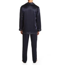 This luxurious pajama set includes a long-sleeved top with white pearl values and matching bottoms. Designed with super soft silk, the crease-resistant fabric regulates your body temperature for year round comfort. Made of woven silk in solid colors and patterns.