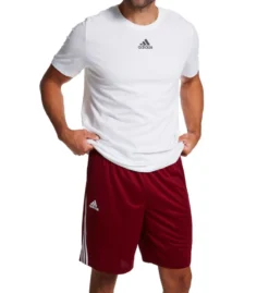 Mesh shorts have triple stripe design at sides for a sporty look. Made of knit polyester.