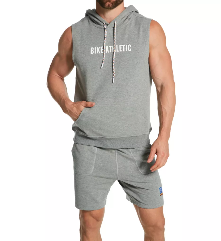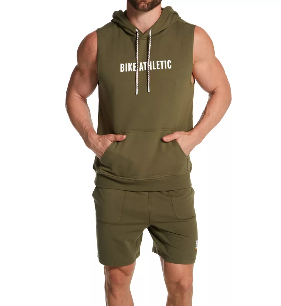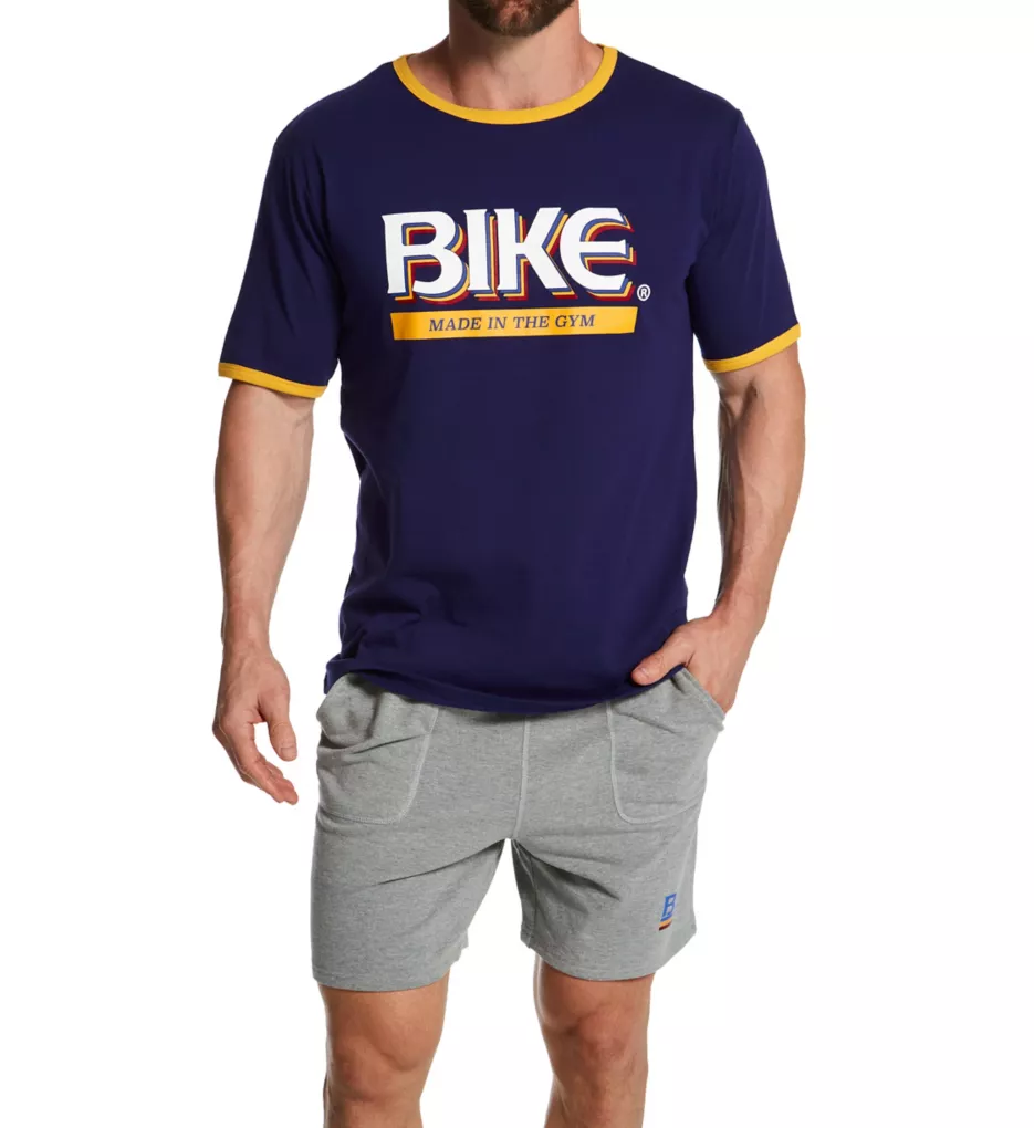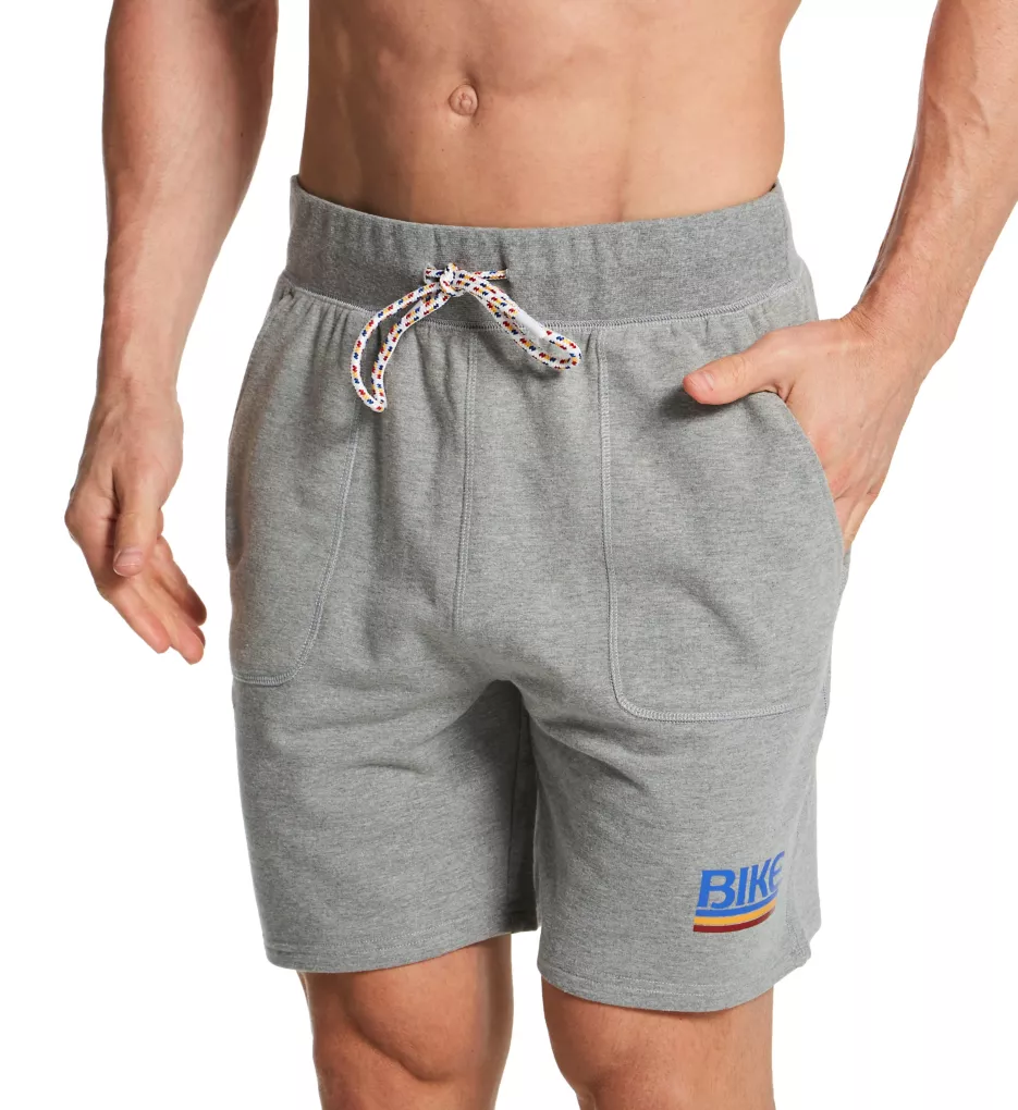 Drawstring shorts have French terry interior for a soft, cozy style. Patch pockets at front and rear can hold small items. Made of knit cotton, polyester, and spandex.