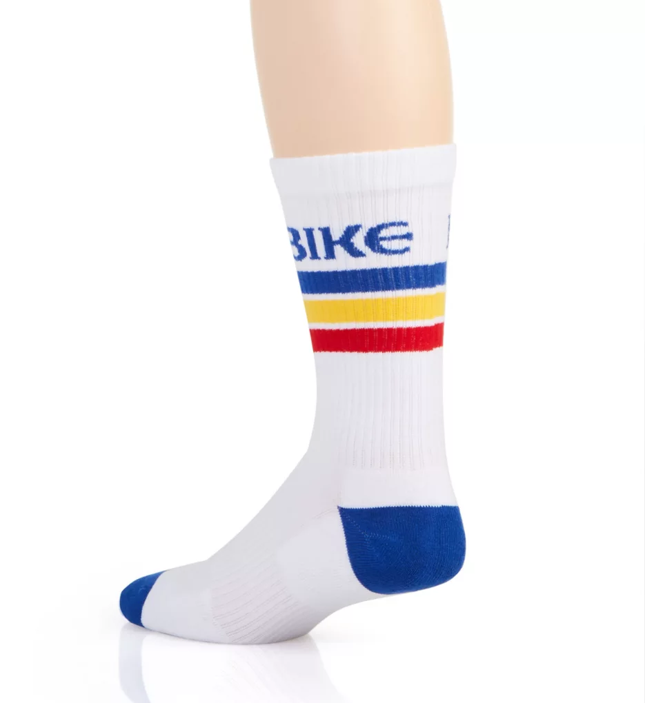 Classic logo and stripe design adds a retro element to this comfy pair of crew socks. Made of cotton, nylon, and spandex.