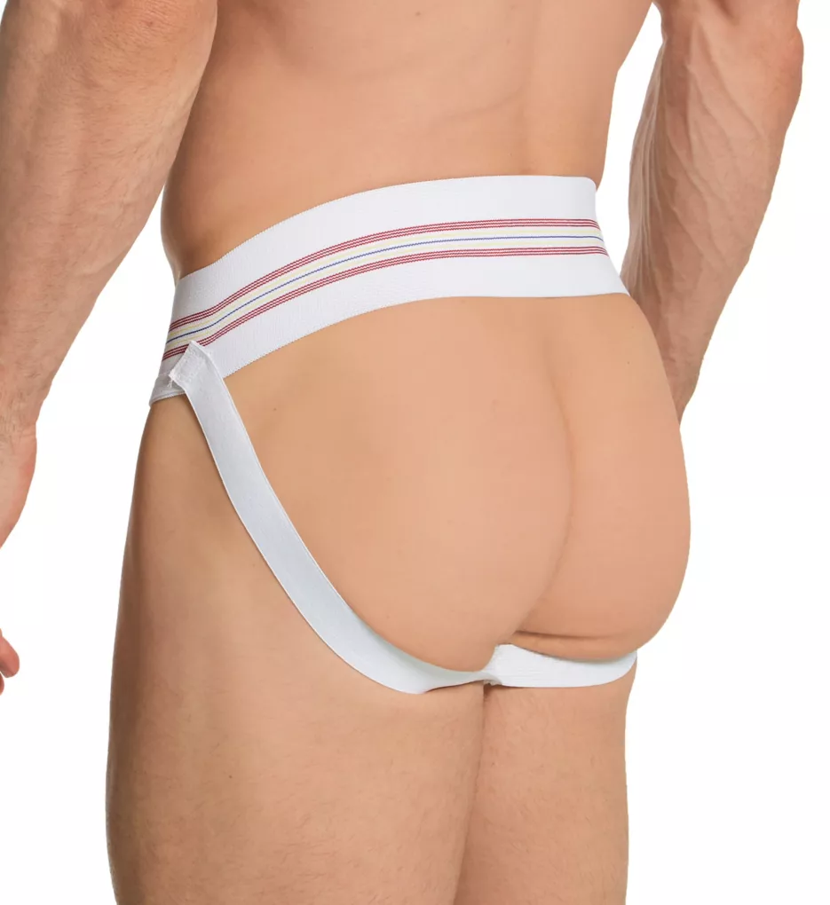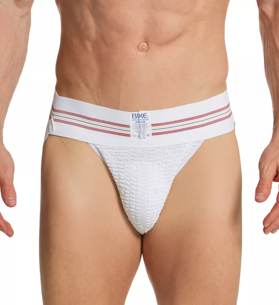 Lightweight flyless jockstrap has textured microfiber pouch that keeps you supported and comfortable with its vertical dart and breathable stretch knit. Made of polyester, nylon, and elastomer.