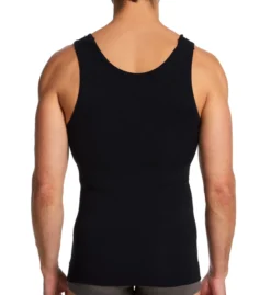 Get an instant confidence boost with this body shaping tank. Moderate control and high compression styling helps shape the mid-torso and hips for a more slim look. Breathable microfiber knit is soft to the touch and even has UV protection. Made of nylon and elastane.