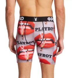 Microfiber boxer brief features red lips with match graphic. Elastic waistband has iconic Playboy logo tag at center back. Sealed pouch is outlined with contrast taping and has ventilated mesh to let “the boys” breathe. Made of polyester and elastane.