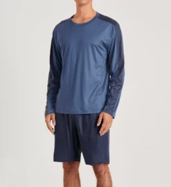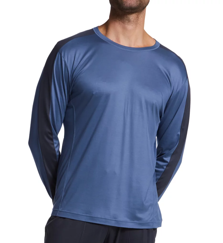Long-sleeved tee features contrast panel that extends from top of shoulders to end of sleeves. Breathable knit is made of knit Tencel lyocell for premium softness and external body temperature regulation.