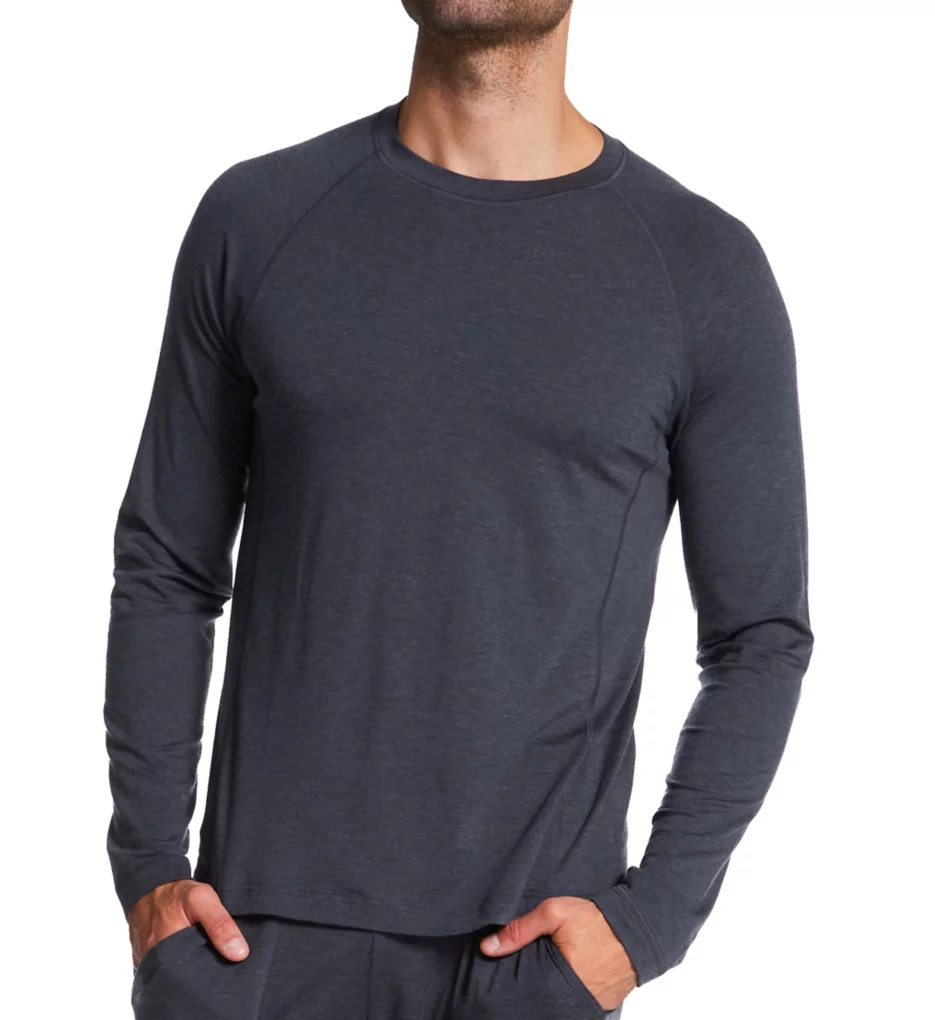 Crew neck tee will soon be your go-to style for cooler temperatures with its soft feel, long sleeves, and comfortable fit. Made of Tencel lyocell, premium Merino wool, and Lycra elastane.