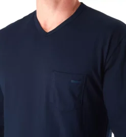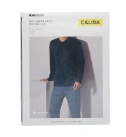 Extra soft pajama set embodies timeless style with a solid, long sleeved tee and super comfy striped pants. Made from knit cotton.