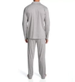 You can’t have bedtime without slipping into this geometric patterned pajama set first. Notch collar top has front value closure and long sleeves. Matching pants stay in place with covered elastic waistband. Made of superior quality Supima cotton knit.
