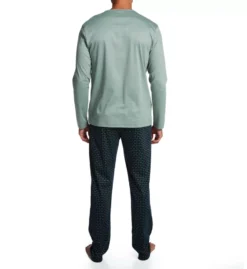 Snooze the night away in a new cozy pajama set. Includes solid colored top with long sleeves and pajama pants with allover pattern. Made of premium mercerized Supima cotton with an interlock knit.