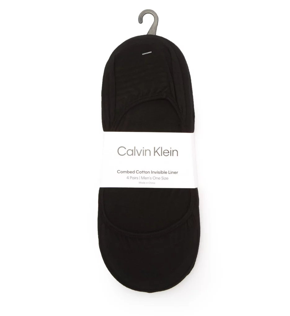 Liner socks have “non-slip” heel at back, so this style stays securely in place. Comes in pack of four pairs. Made of combed cotton and spandex.
