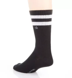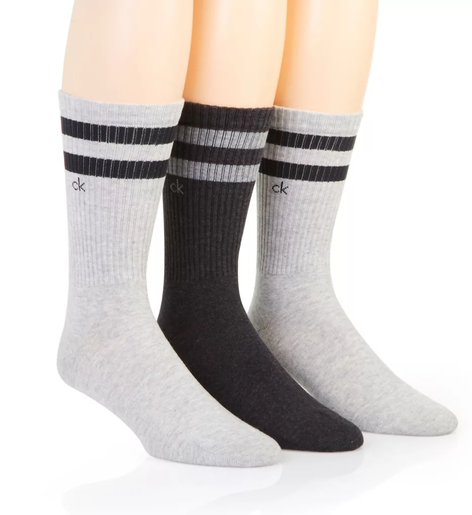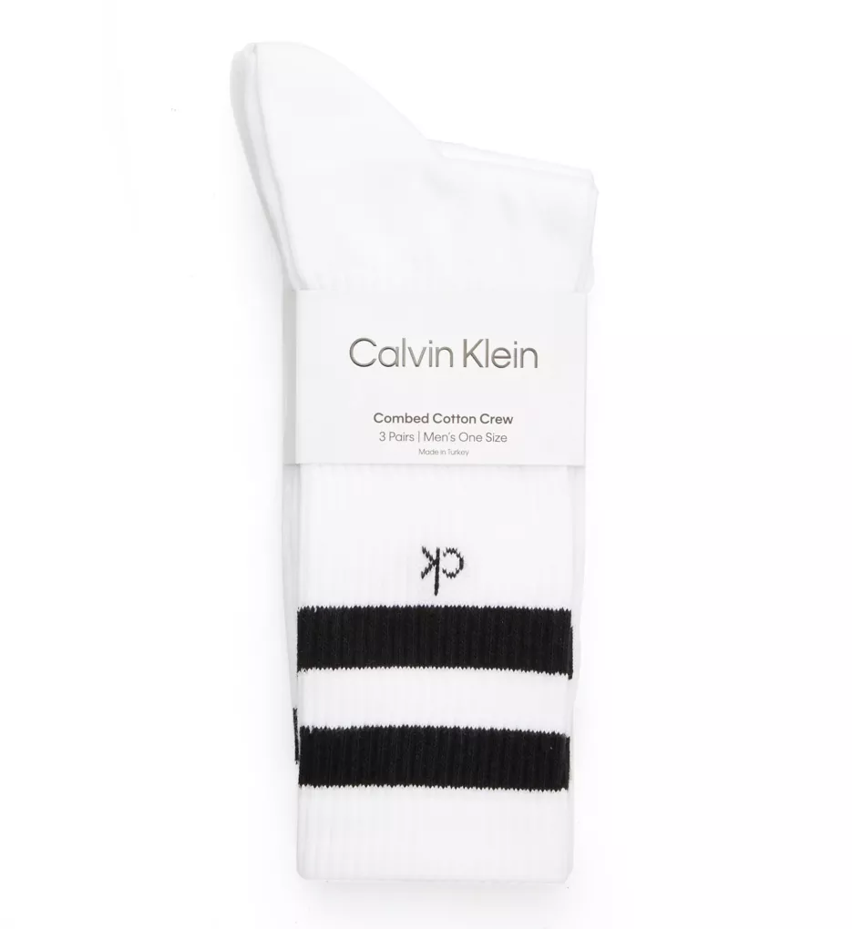 - Leg is ribbed, with a two-ply cuff for extra hold, and has two stripes around the top with ck logo.