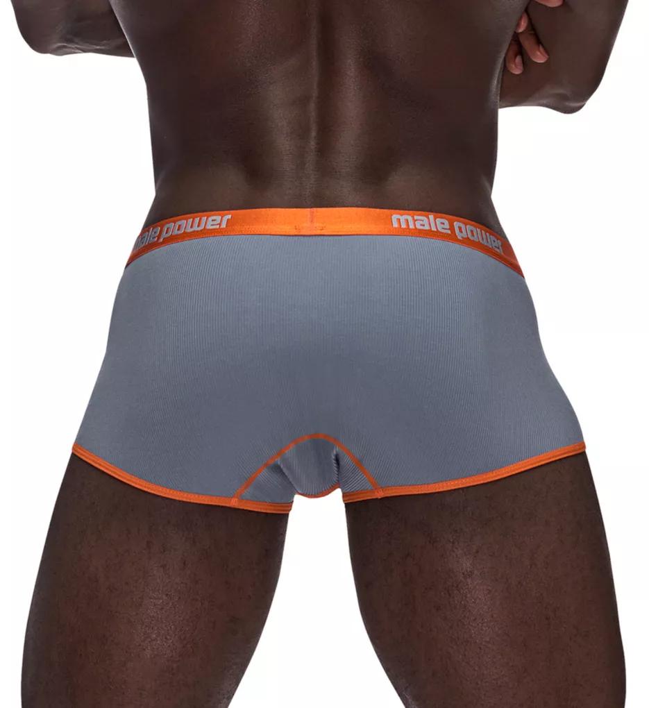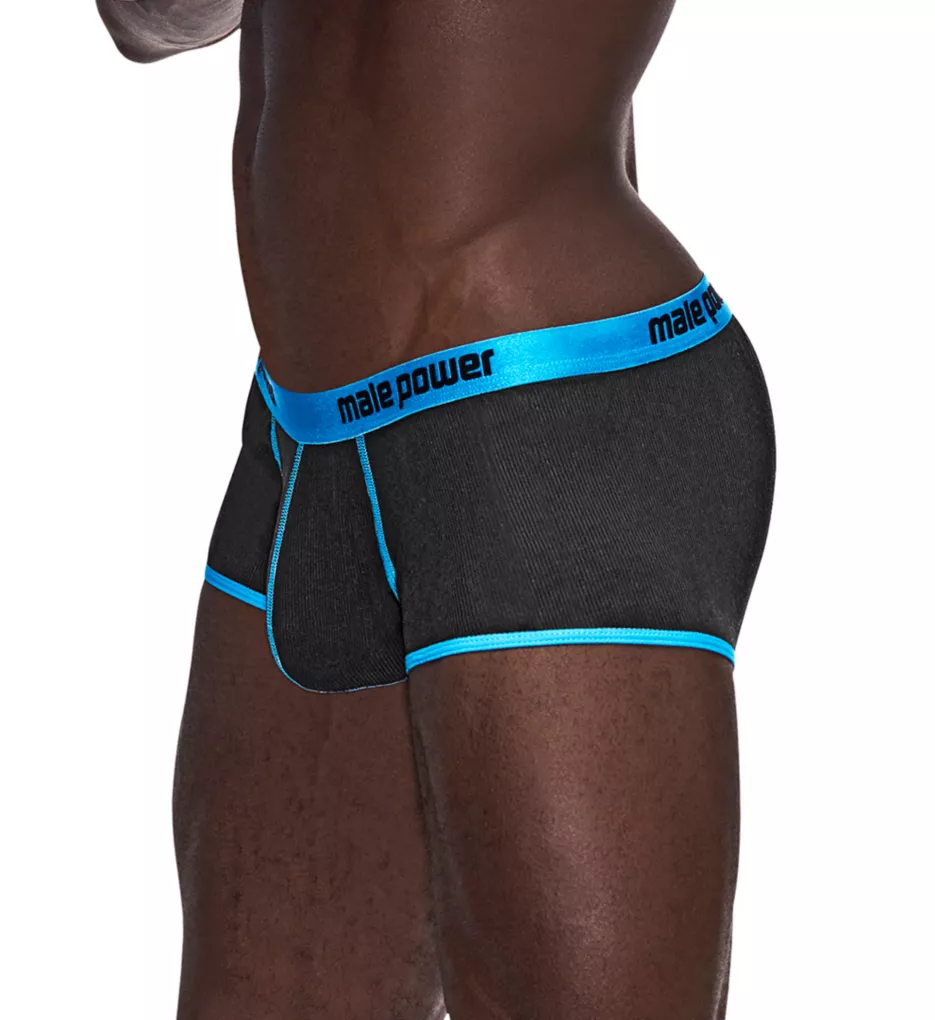 Make a sexy statement in this ribbed knit mini trunk. Made of modal and spandex.