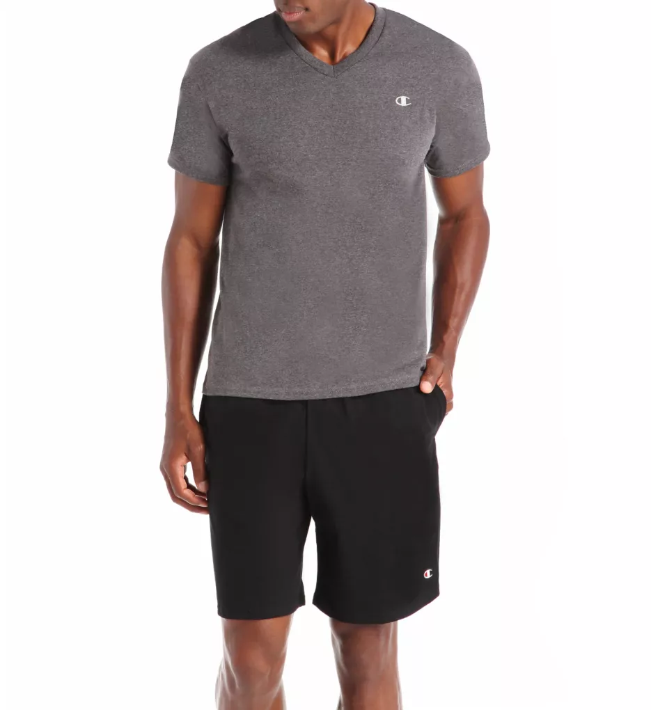 - Exposed elastic waistband with interior drawstrings keeps shorts up and in place.