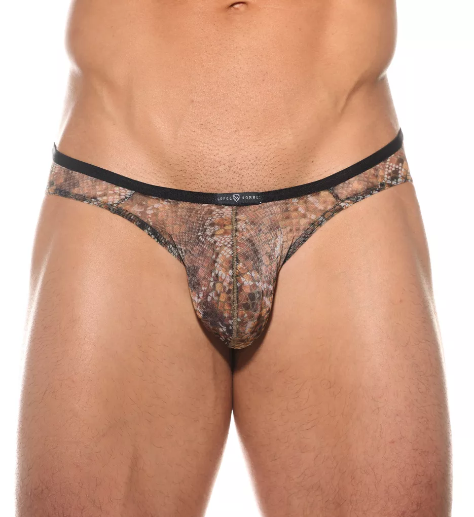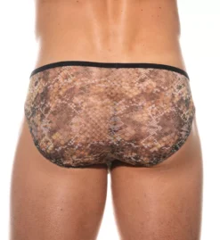 Charming flyless brief sports a seductive snakeskin print on see-through mesh body. Made of polyamide and elastane.