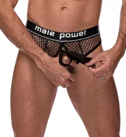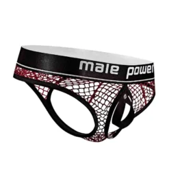 - Exposed elastic waistband with the Male Power logo at center.