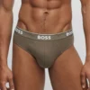 - Elasticized waistband has jacquard logo on shiny exterior.