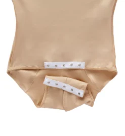 This bodysuit wears easily under clothing as you never have to worry about it coming untucked. Its targeted slimming will smooth out your middle, back and chest. Made from nylon and spandex.