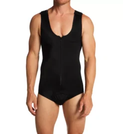 This bodysuit wears easily under clothing as you never have to worry about it coming untucked. Its targeted slimming will smooth out your middle, back and chest. Made from nylon and spandex.