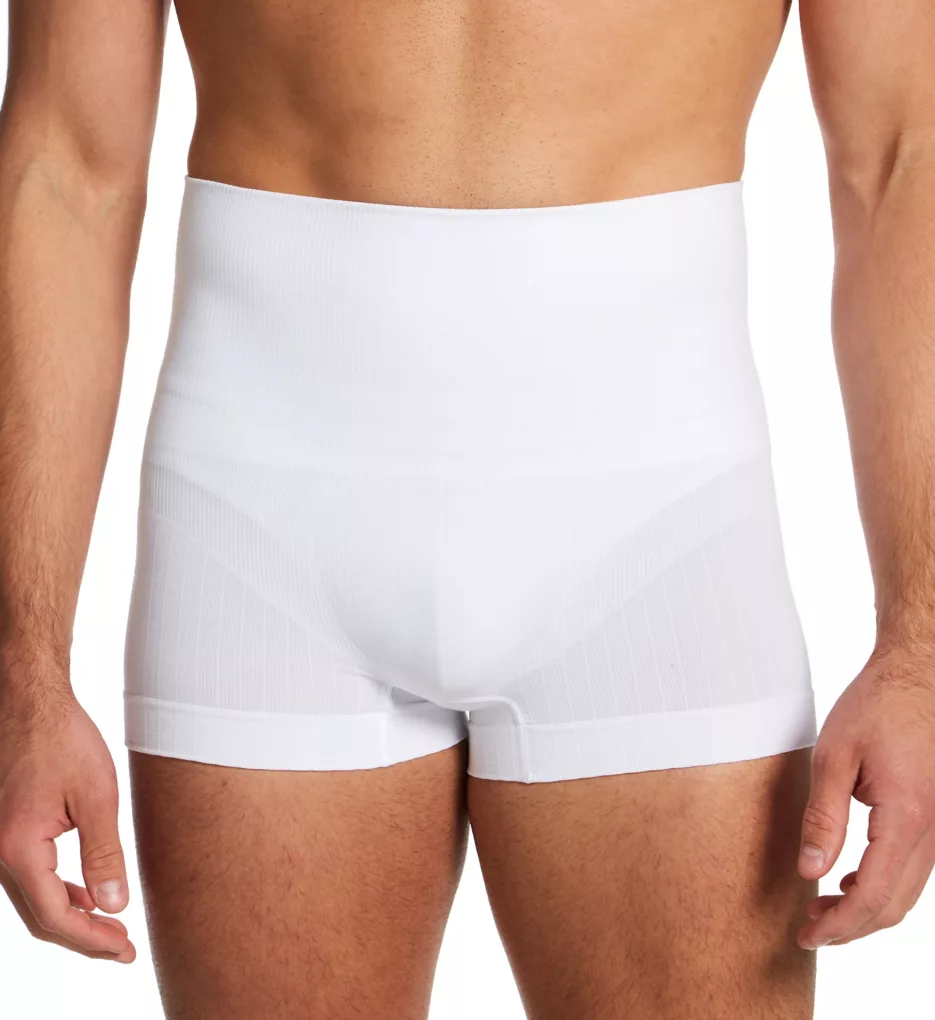 High waisted boxer helps give you a more sculpted look in seconds with its strong compression knit, smoothing waistband, and rear lifting bands. Made of nylon, cotton, and spandex.