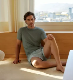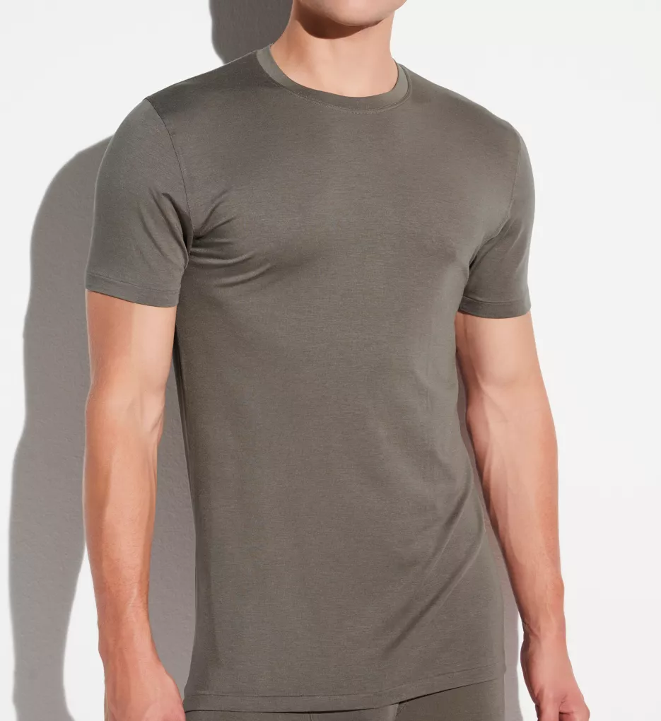 Crew neck shirt is made of modal and polyamide for lasting softness, with a touch of elastane for flexible fit.