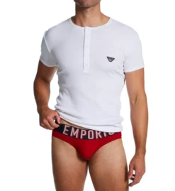 Solid cotton brief with oversized logo styling sits low across the hips. Made of cotton and elastane.