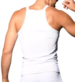 This ribbed knit tank top is a form-fitting style that flatters your physique. Made of nylon and spandex.