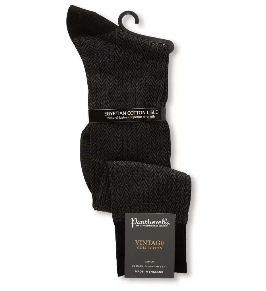 Experience the unrivaled quality and refinement of these over the calf dress socks with a classic herringbone pattern. Made of Egyptian cotton lisle with nylon for durability.