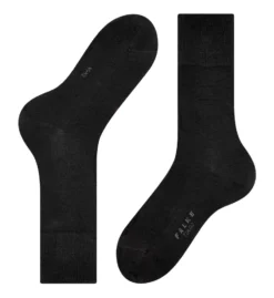 - Falke logo and collection name with European sizing text knit into footbeds of both socks.