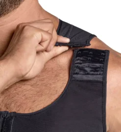 - Hook-and-eye closures at shoulders allow you to adjust fit and support level for your back.