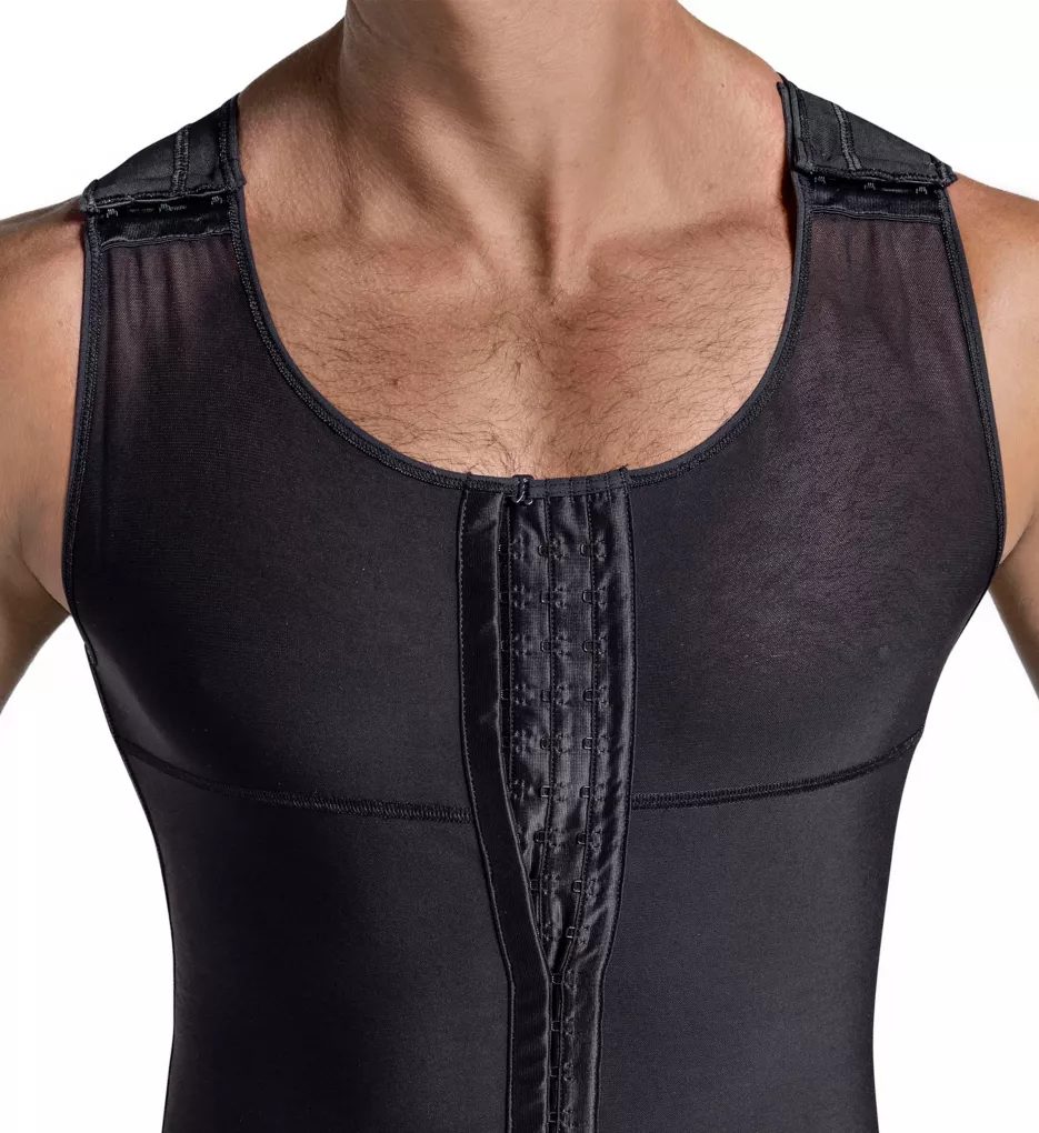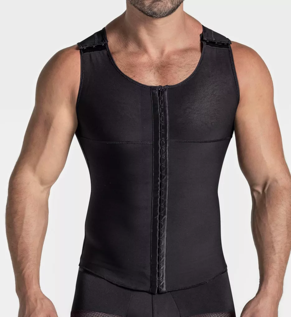 Torso-toning compression vest with a specially designed back to give you support between your shoulders and at your lower back. Made of polyamide, elastane, and cotton.