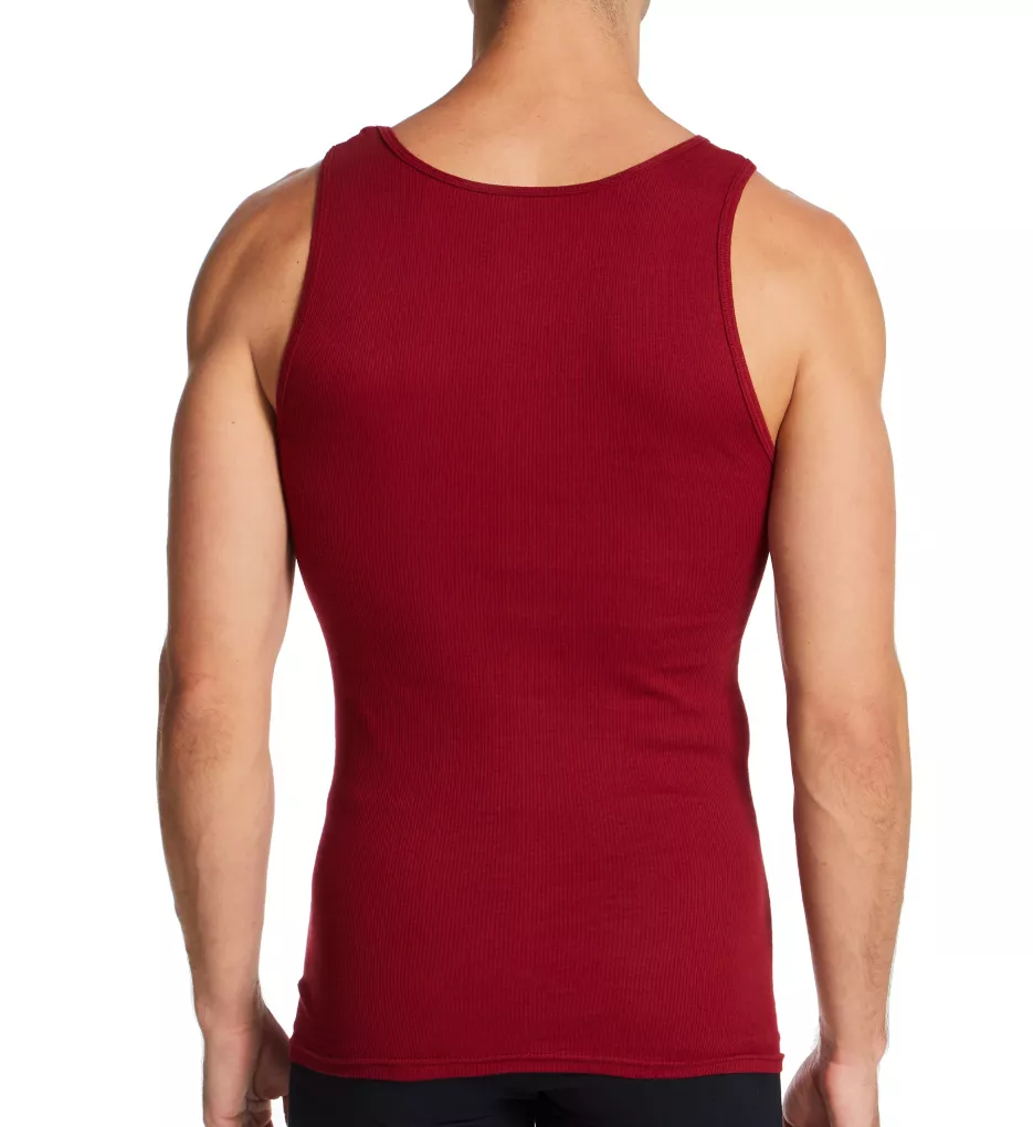 Ribbed A tank has curved armholes, moisture wicking, and flexible knit for lasting comfort. Comes in an assorted multipack of six. Made of cotton.