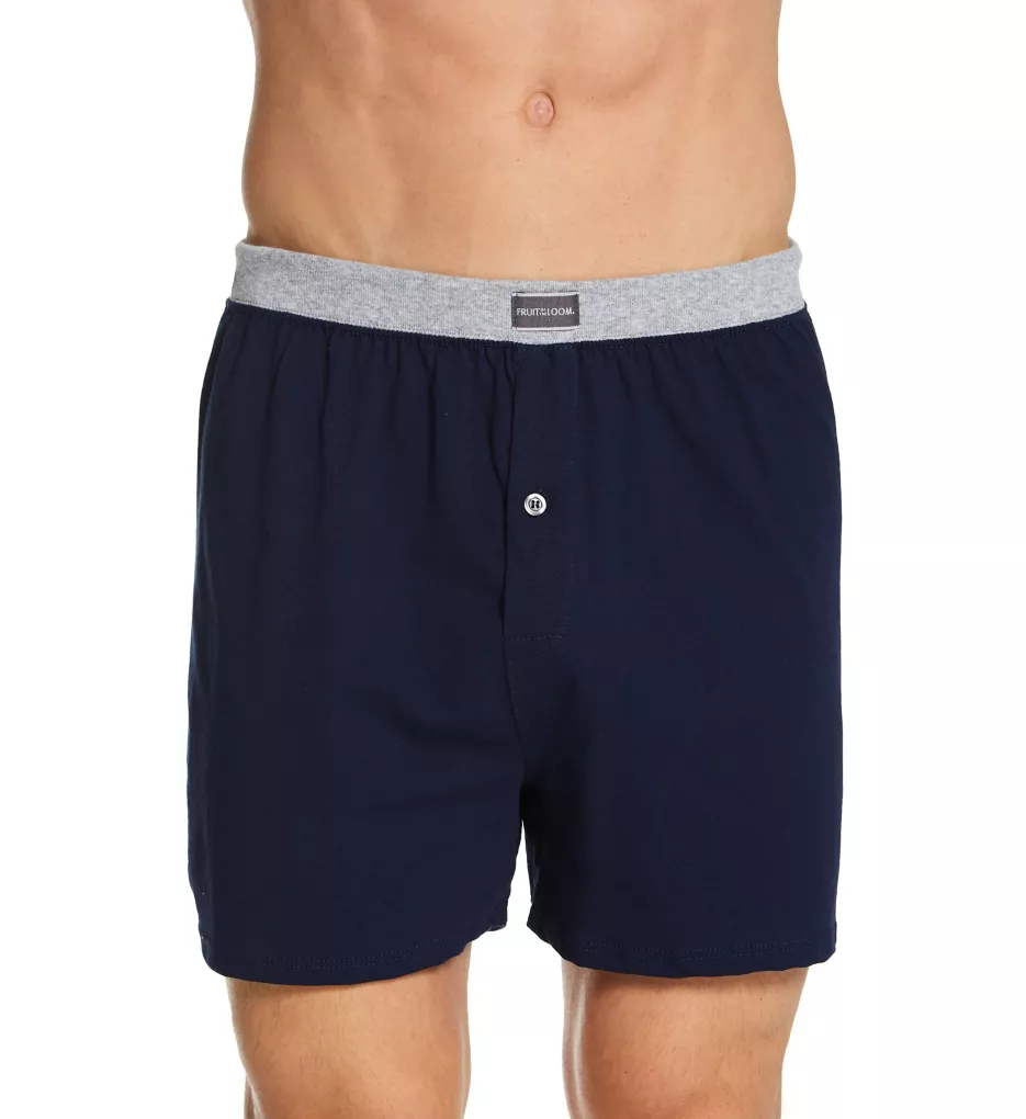 Loose and comfortable knit boxers have enough pairs in each pack to get you through the work week. Made of knit cotton and cotton/polyester blends.