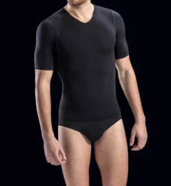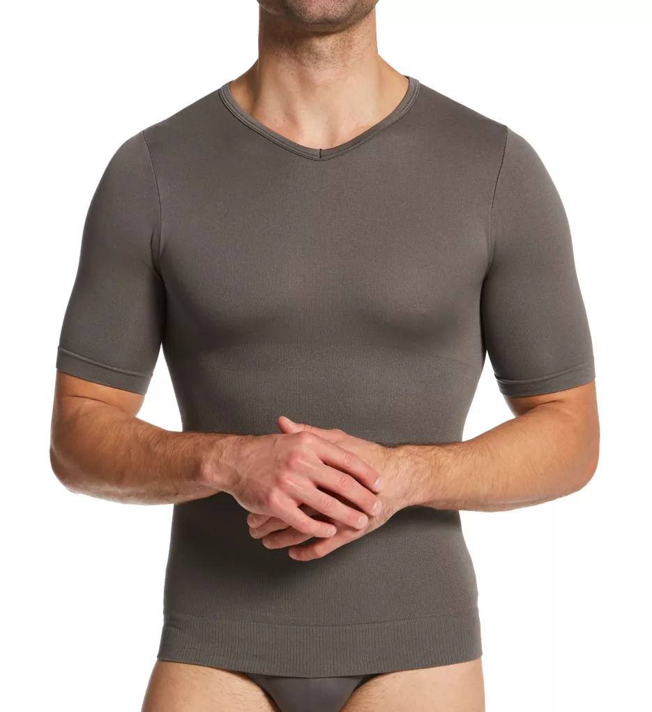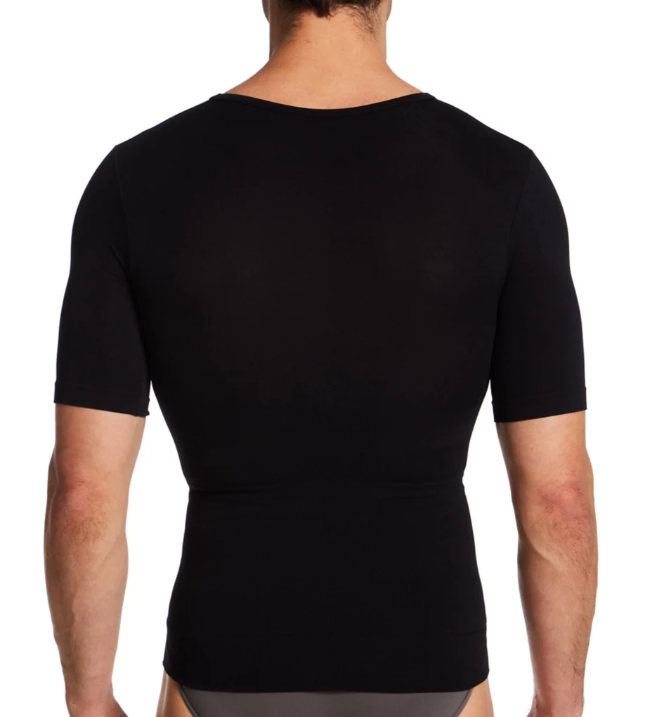 You’ll get an instant slimmer look in seconds once you slip into this short-sleeved shaping tee. Made of nylon and elastane.