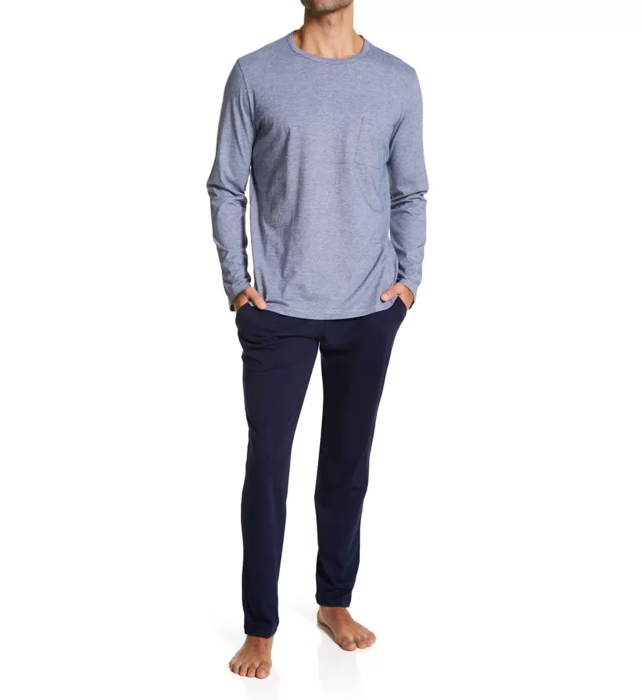 Pure cotton set with understated style and an extra soft feel for wear during day or night. Made of knit 100% cotton.