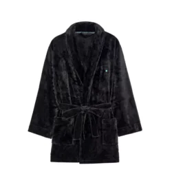 Nothing beats a cold morning quite like this plushy fleece robe. Once you slip into this super soft style, you’ll stay warm and cozy. Made of knit polyester.