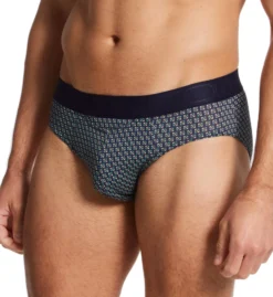 Low slung brief has an extra soft blend of fabrics, a fly opening across top of pouch, and a geometric pattern. Made of modal, cotton, and elastane.