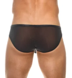This unique brief spices up your romantic evening with its anatomically correct contour pouch, flirty cut-out, and faux leather details at waistband and straps. For enhancement, adjust the straps with the snap closure at bottom. Made of nylon and spandex.