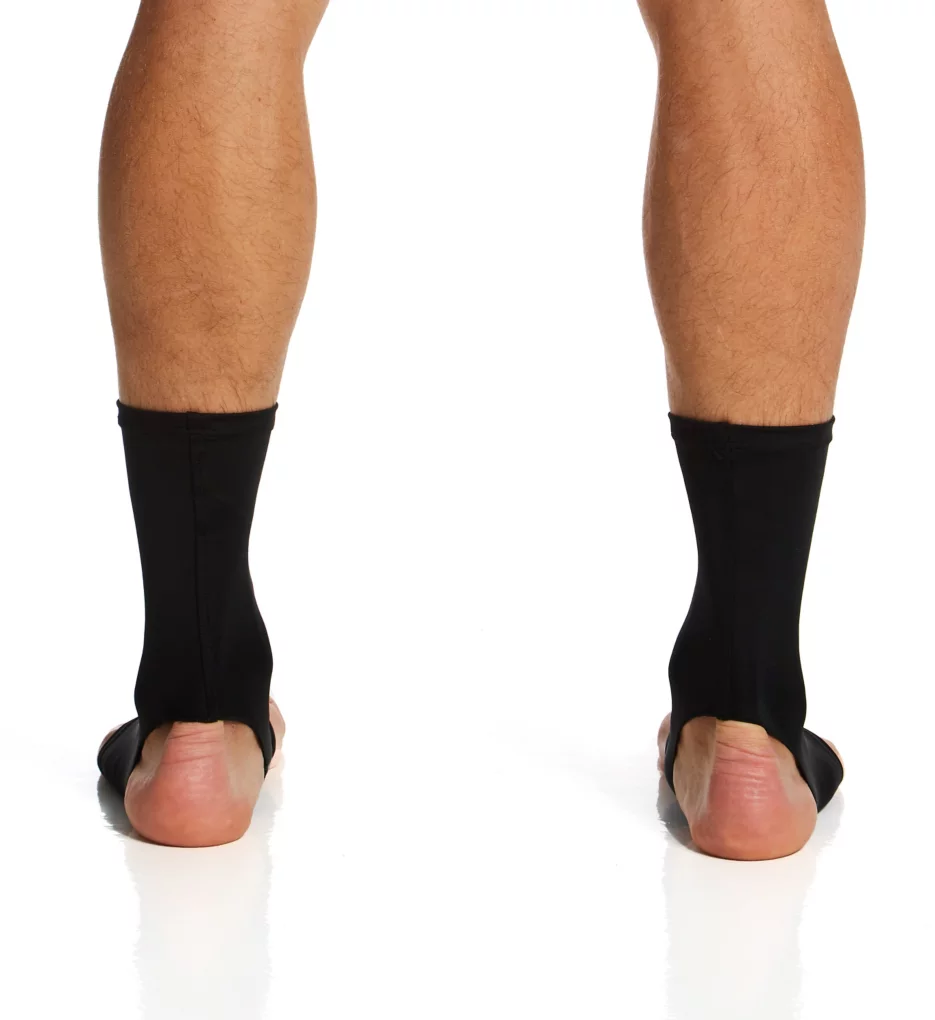 Ankle support sleeves are soft microfiber knit with compression styling to help reduce muscle fatigue and increase mobility. Made of nylon and spandex.