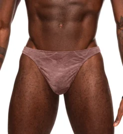 Flyless thong makes a bold statement with its unique tonal pattern and raised graphics on silky soft microfiber knit. Made of nylon and spandex.
