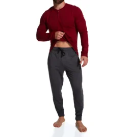 Understated, stylish, and comfortable set for sleep or just relaxing at home. Made of a knit blend of cotton and polyester.