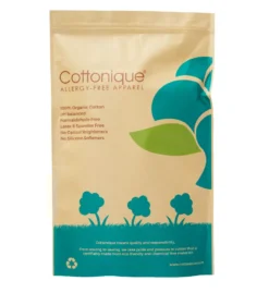 - Cottonique’s elastic is a special hypoallergenic non-polyester synthetic that’s fully encased in their organic 100% cotton fabric.