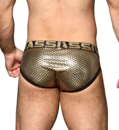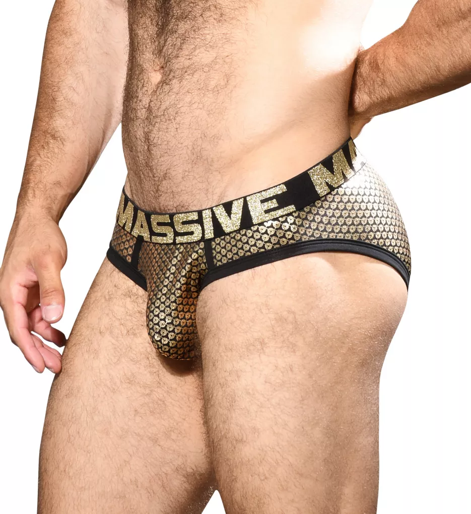 - Brief has sparkly sequin print.