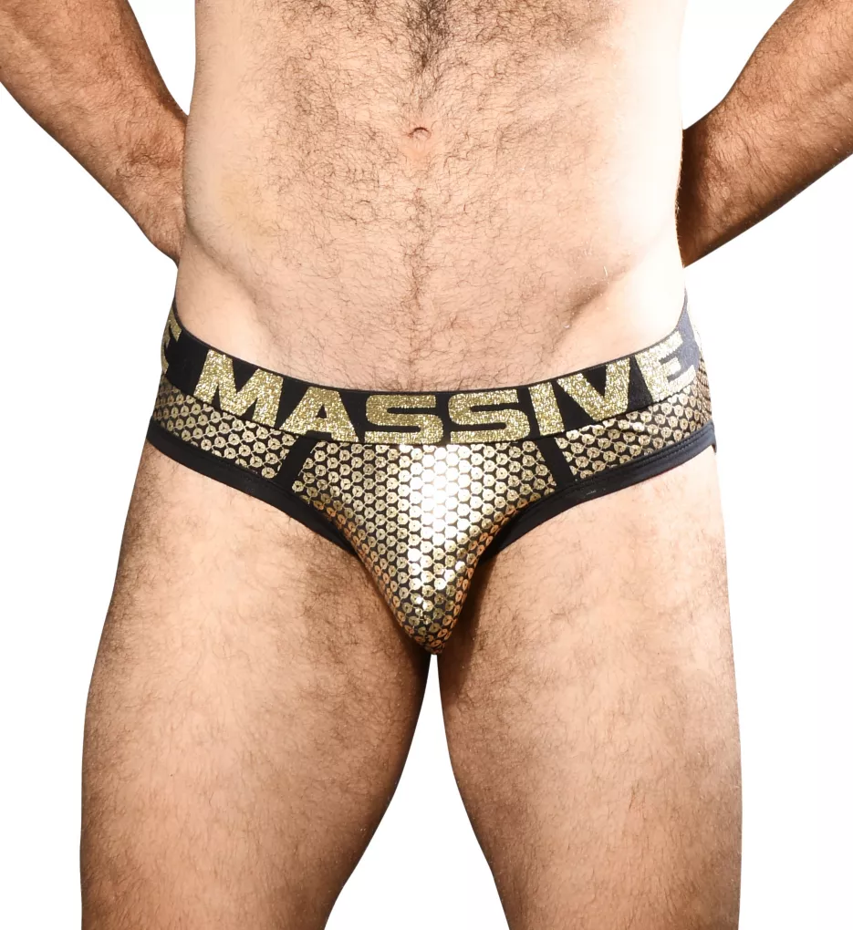 Low rise brief will catch your partner’s eye with its anatomically correct pouch, shimmery sequin print, and sparkly waistband. Made of polyester and spandex.