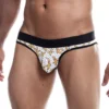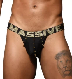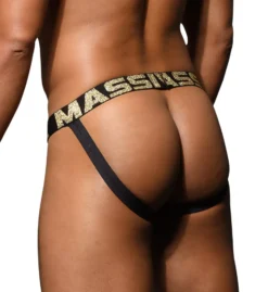 Low rise jockstrap shows off your masculinity with its anatomically shaped pouch and golden stud detail. Made of polyamide, cotton, and spandex.