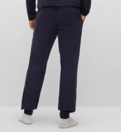 You’ll be lounging in comfort when you wear this pair of flyless lounge pants. Tie the drawstring at center front for an extra secure fit. Side pockets are deep enough to hold your phone and other small items. Made of knit cotton and elastane.