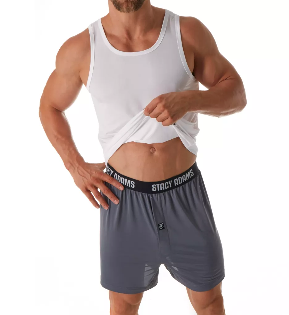 Cut loose and full for comfort, these liberating silky boxer shorts have a contrast color waistband with logo, and a hidden value-fly front. Made of ComfortBlend polyester/spandex knit.