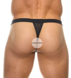 - Mesh thong band gives minimal rear coverage.