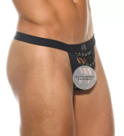 Your partner’s heart will race whenever you slip into this low rise thong. Flyless “caged” pouch has metal spikes for a masculine look. Made of polyamide and elastane.