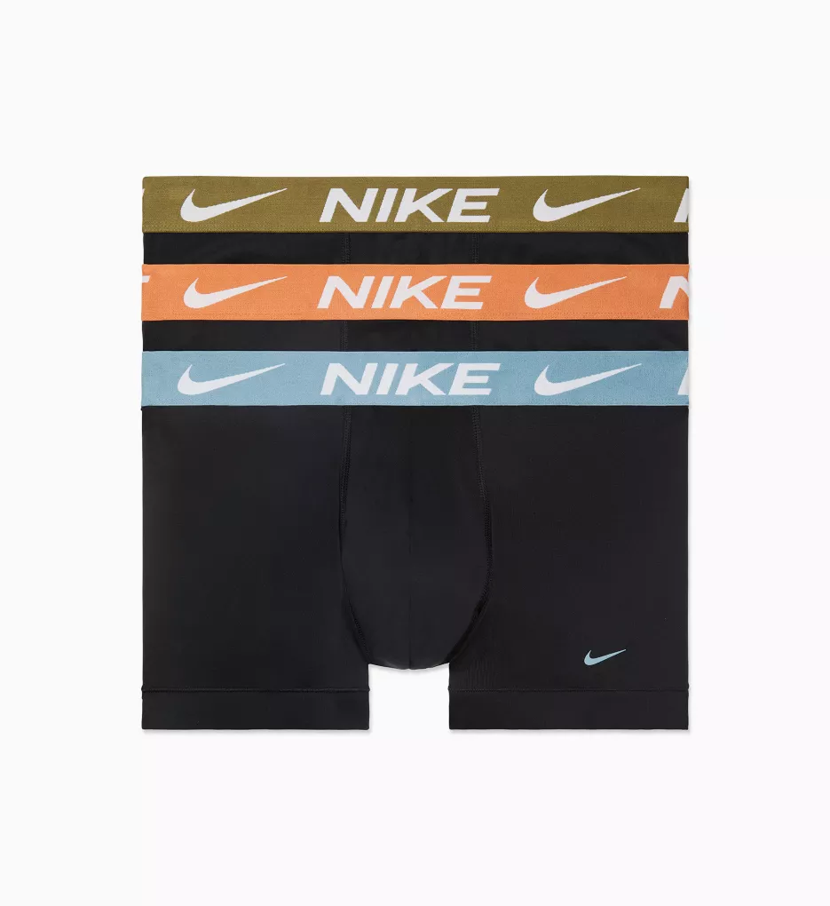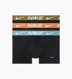 All good things come in threes. This multipack is no exception. These flyless trunks are styled with multi-directional stretch knit that moves with you. Nike’s Dri-Fit technology wicks away moisture, so you stay cool and dry. Sleek microfiber is made of reprocessed polyester, nylon, polyester, and elastane.