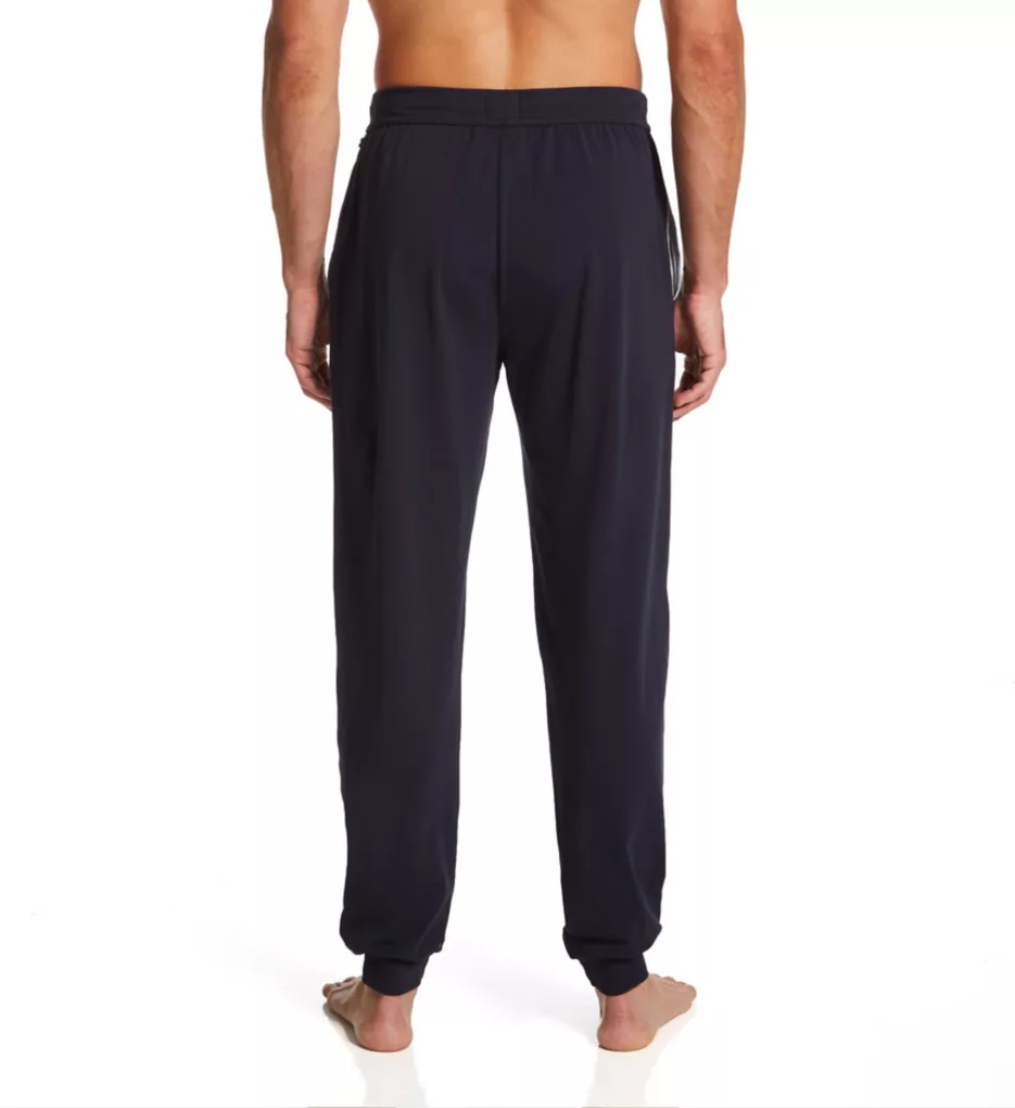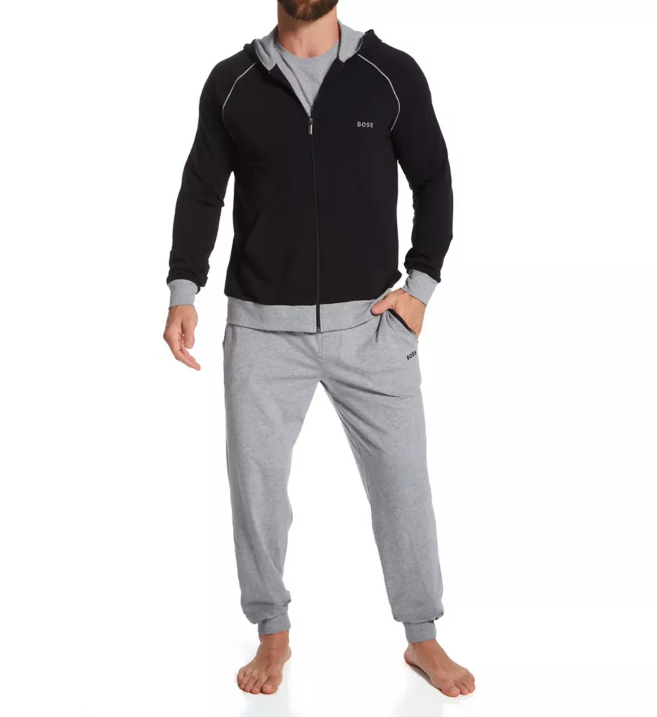Flyless lounge pants have adjustable drawstring waist and side pockets to hold small items. Embroidered “Boss” logo is stitched underneath left pocket. Soft, stretch knit is made of cotton and spandex.