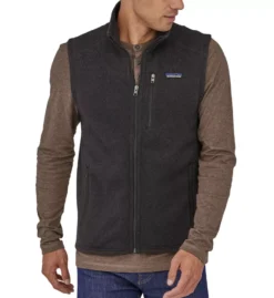 A beefy knit just like your favorite sweater will keep you warm through the cold spells in this vest, featuring sweater knit outside, fleece inside. Made of eco-friendly recycled 100% polyester.